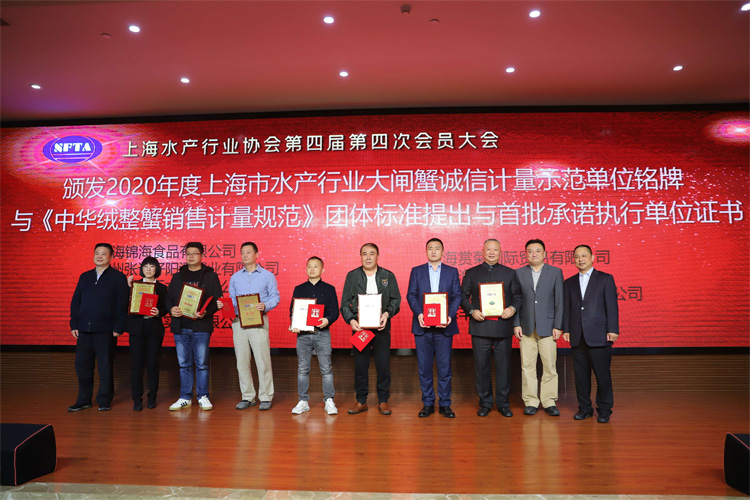 为了进一步提升诚信计量水平、促进民生计量环境持续优化、推动城市诚信计量体系的建设,本次大会在经过综合考核评估后,对苏蟹阁等9家大闸蟹企业授予2020年度上海市水产行业大闸蟹诚信计量示范单位铭牌,以及《中华绒螯蟹销售计量规范》首批承诺执行单位证书。
