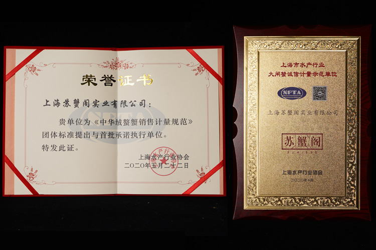 苏蟹阁作为大闸蟹行业的标杆企业之一,受邀参与了此次盛会,并荣获首批“上海水产行业大闸蟹诚信计量示范单位”的称号。